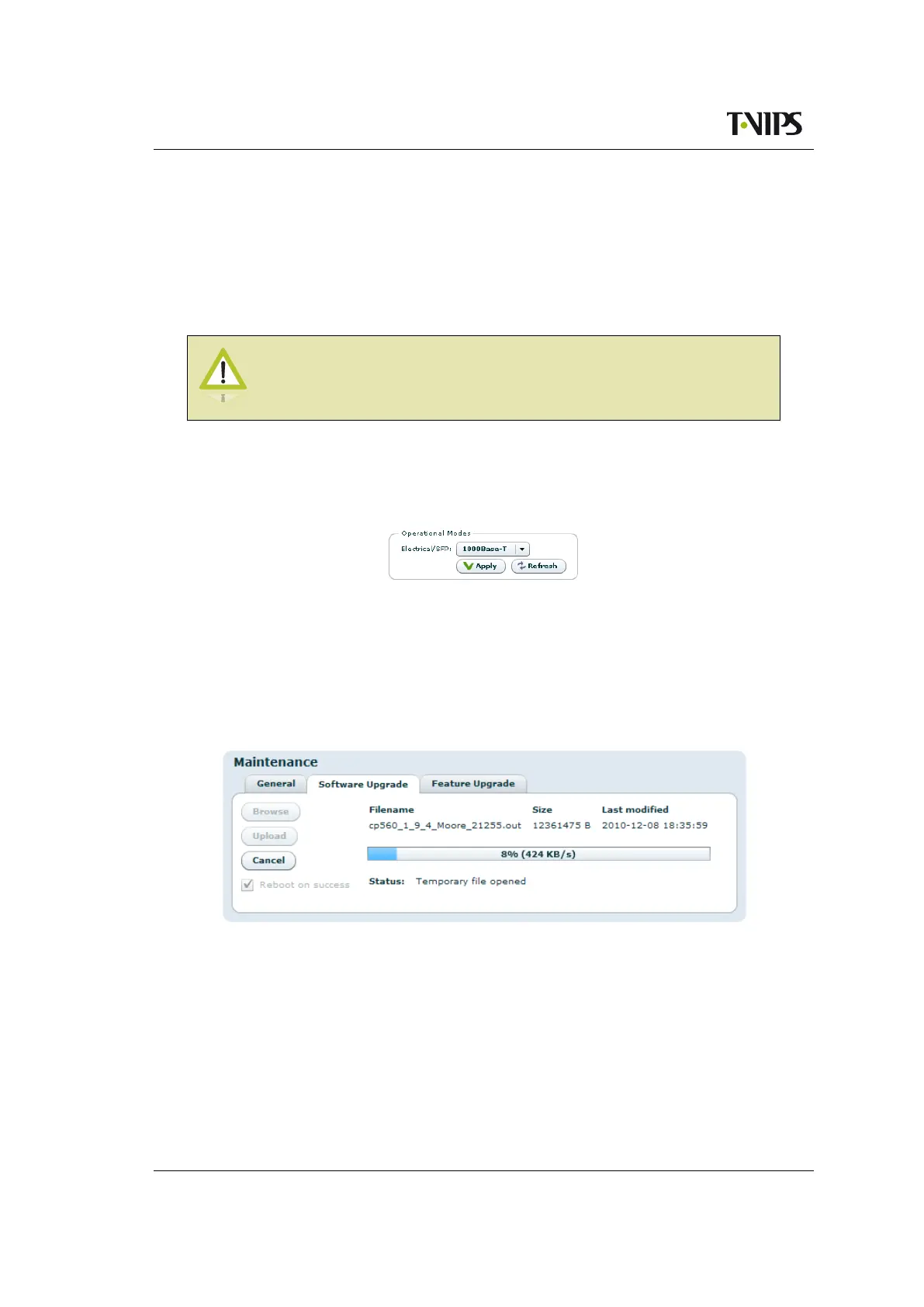 The Software Upgrade sub-page lets the user upgrade the software of the device. The page