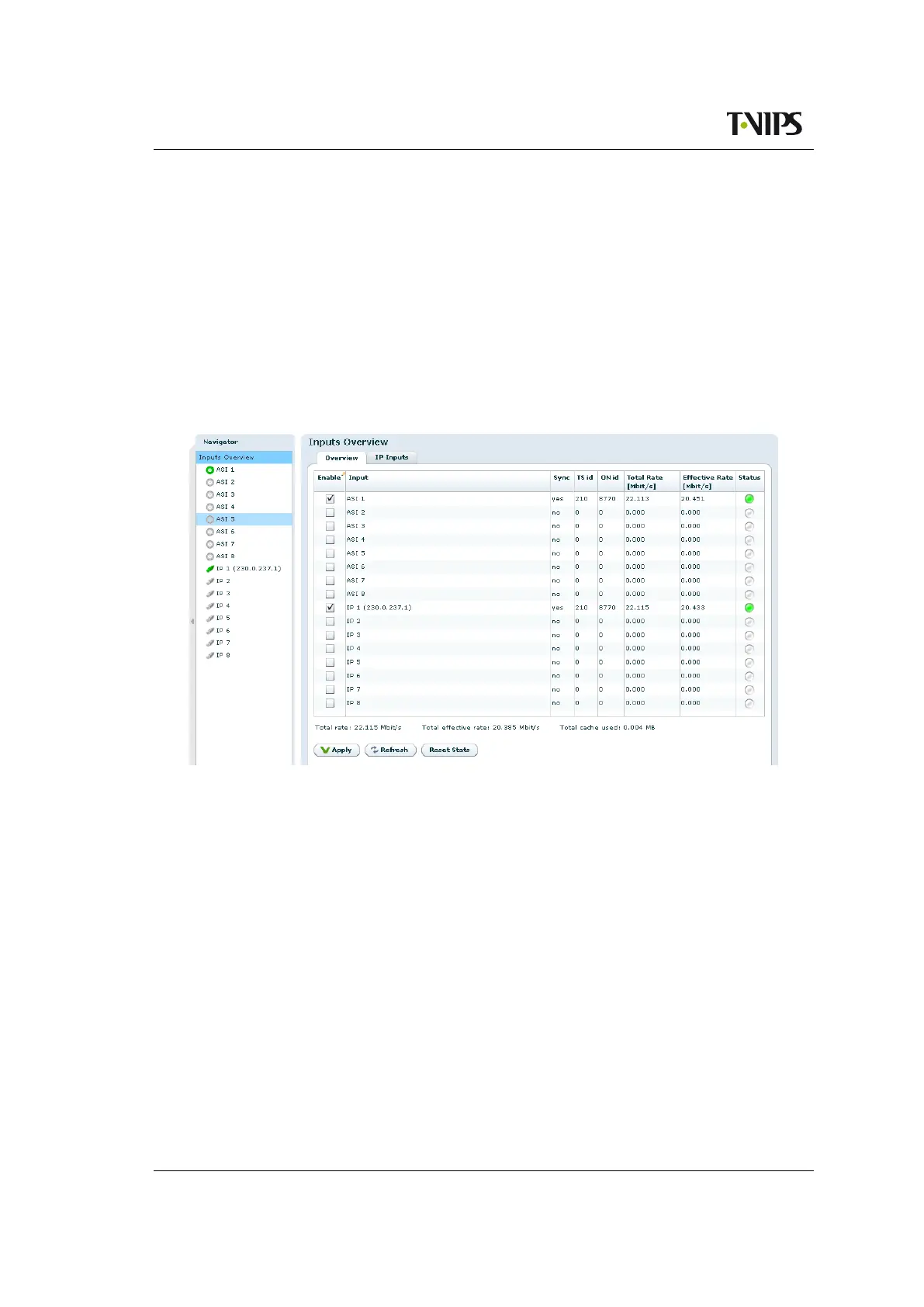 The Inputs page contains all information and settings that apply to the input ports of the device.