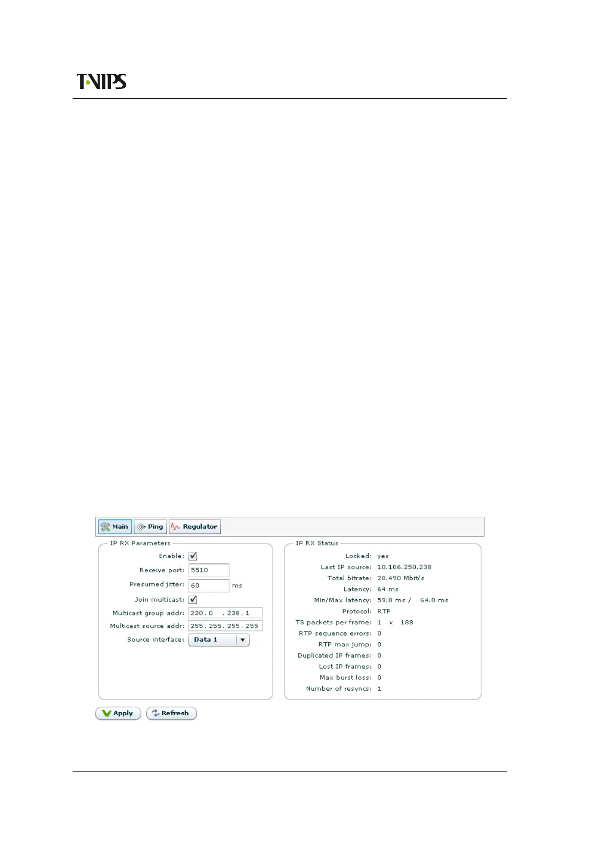 The tab contains three sub pages: IP Configuration, Ping and Regulator.