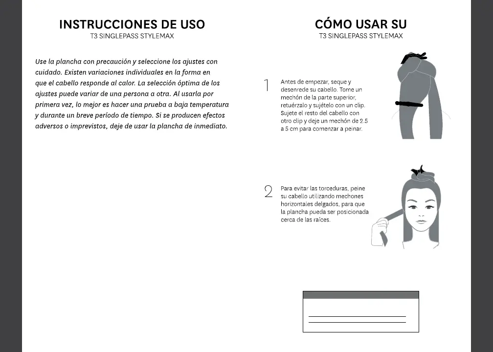 Cabello grueso: Deslice la plancha a 25 mm por segundo.