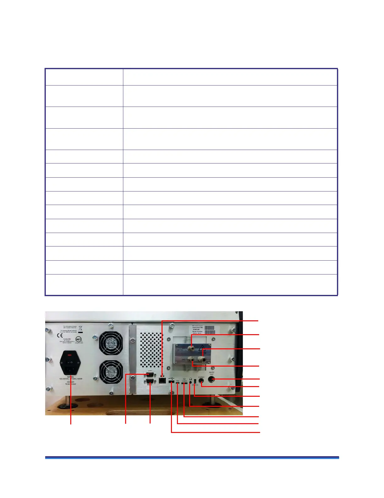 The Discovery DSC back panel has thirteen ports; the table below provides a description of the function of