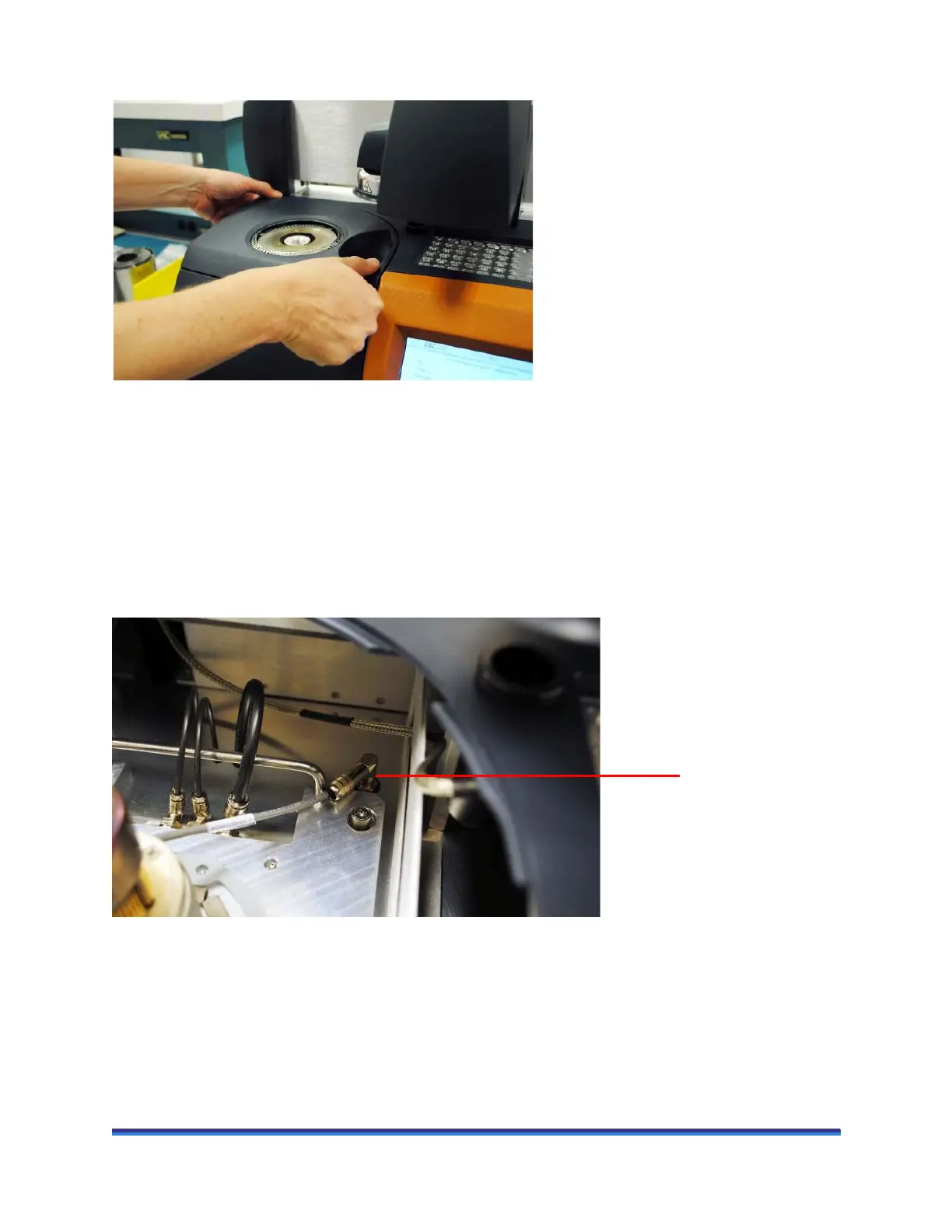3 Position the cooling head by aligning it with the pin in the instrument cell plate.