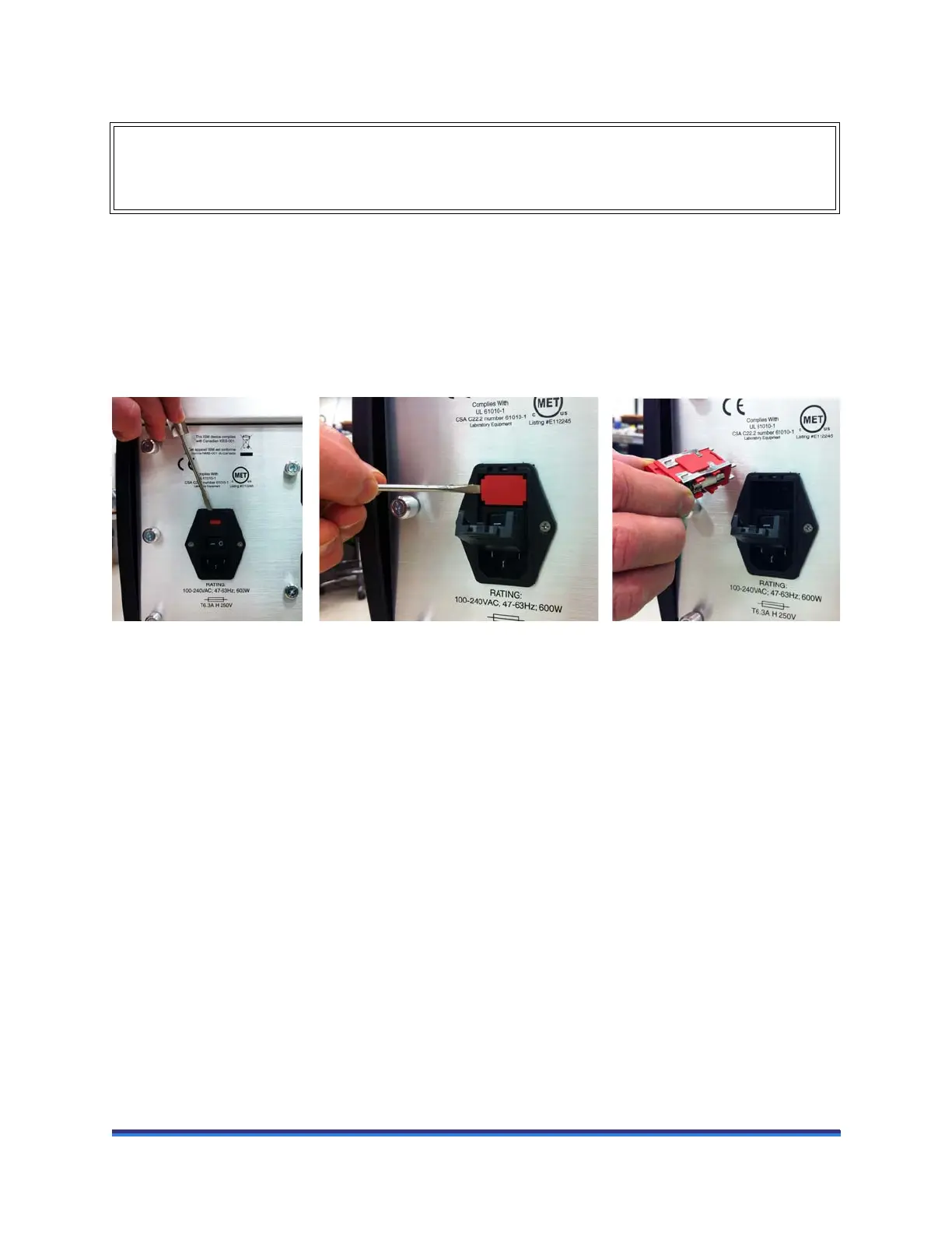 3 Remove old fuses and replace the fuses only with the type and rating indicated on the instrument’s rear