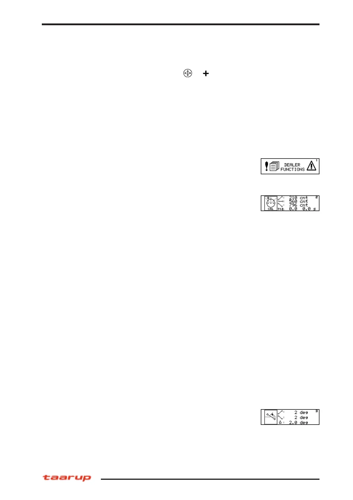 Dealer function screens display parameters that may be changed/configured by dealer level