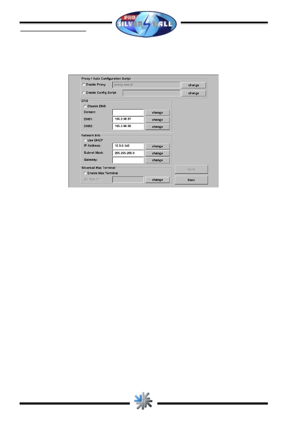 Then press „Page 2...“ and enter the network settings. The example below is only valid in