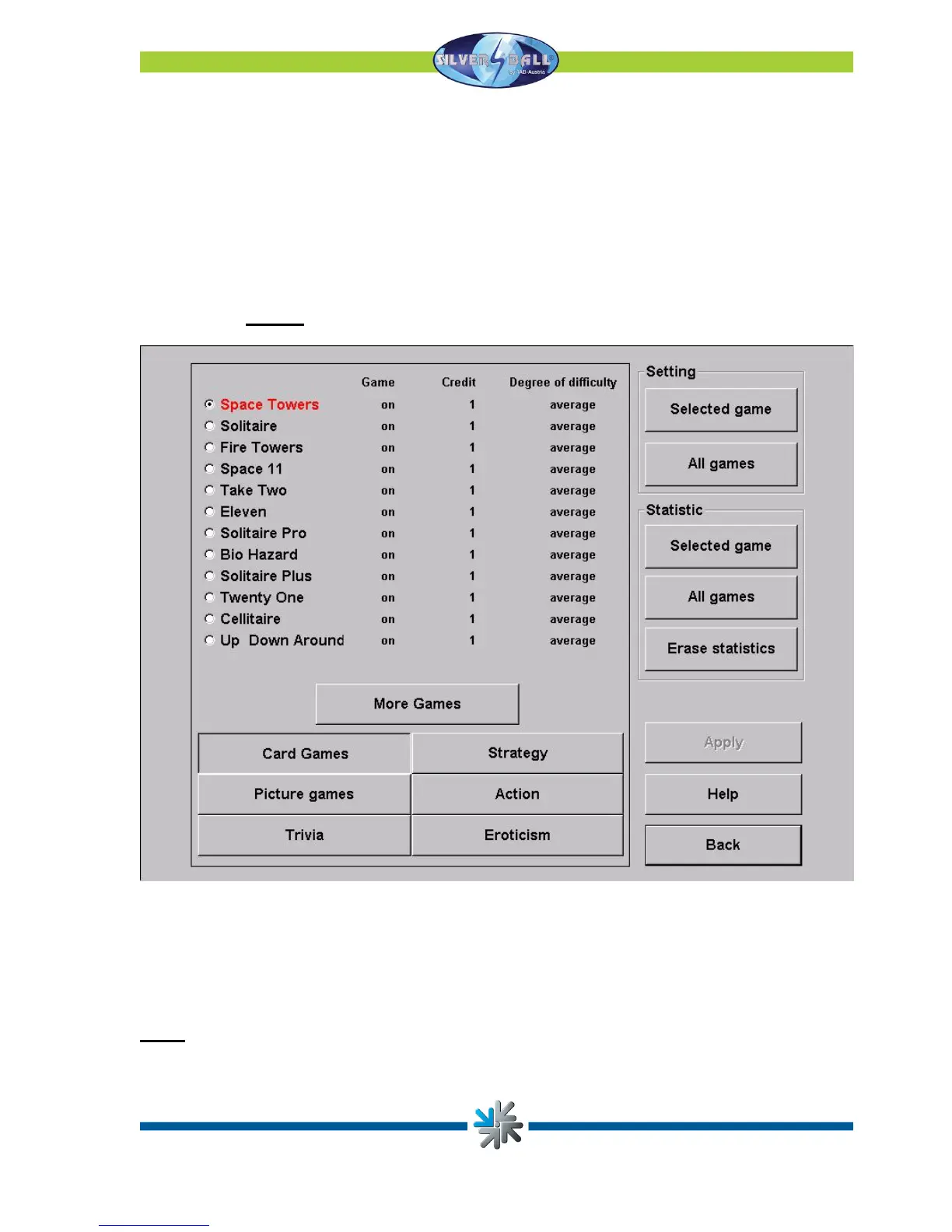 switch each game ON or OFF, call up separate statistics for each game and modify each