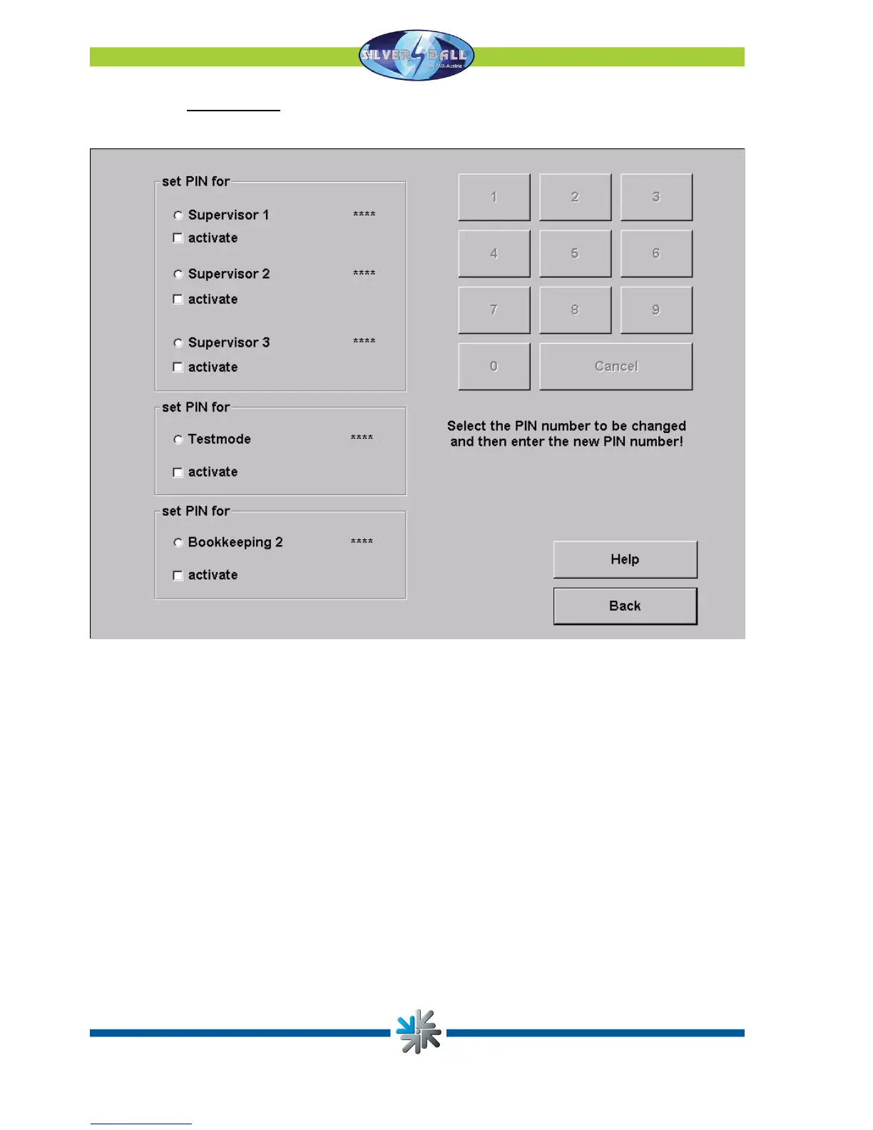 After setting the PIN code you can find the Silverball logo in the lower left side after
