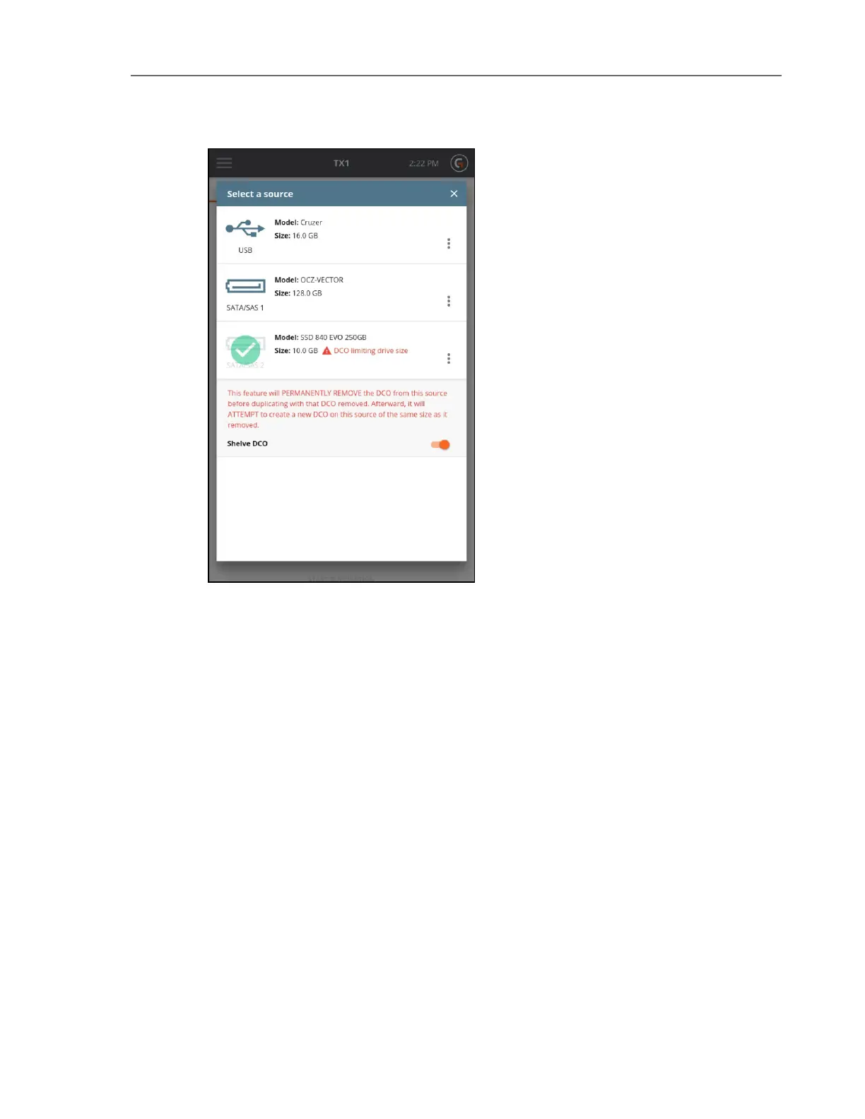 Note: The Shelve DCO feature is only available for SATA drives that support DCO.