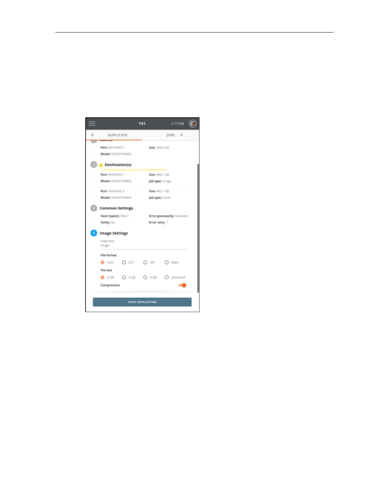 8. Once you are satisfied with your settings and drive selection, tap the Start Duplication