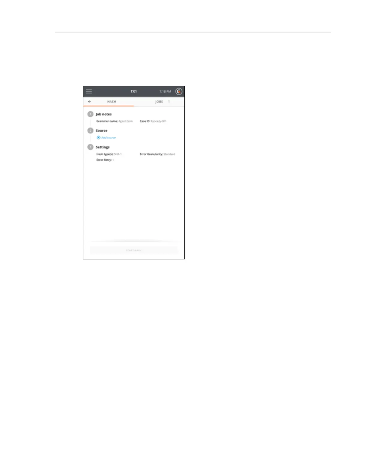 2. Enter Job notes, select a Source drive, and review Settings and change if desired.