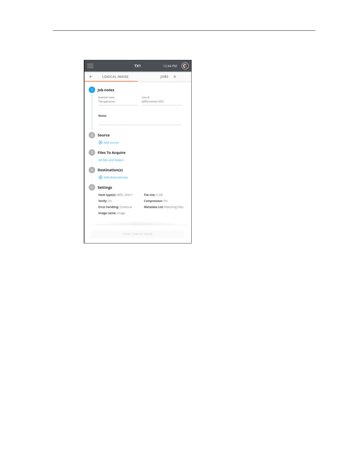 screen by tapping on the 2 or Source heading from the logical image job setup stepper.