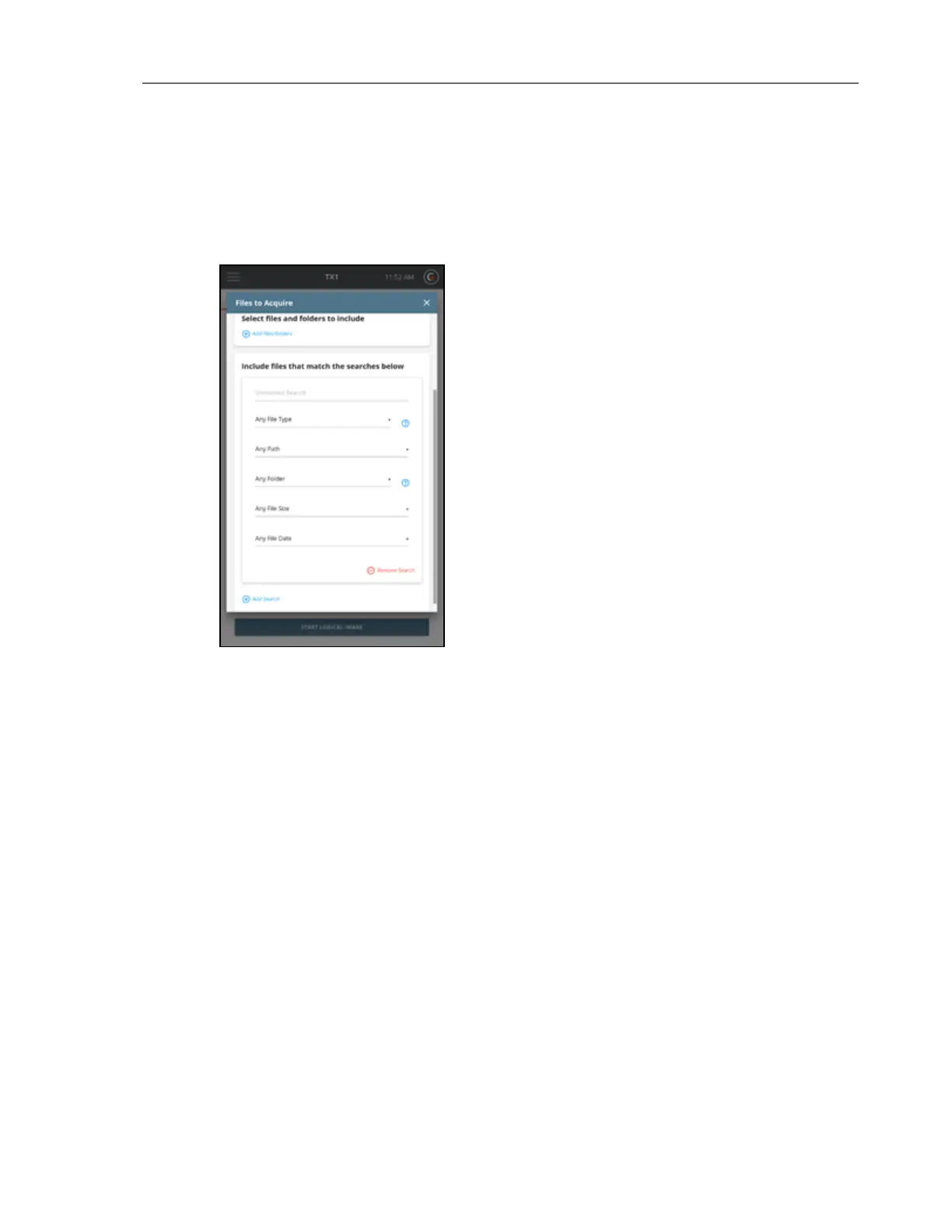 From the main Files to Acquire window, selecting the Include files that match the searches