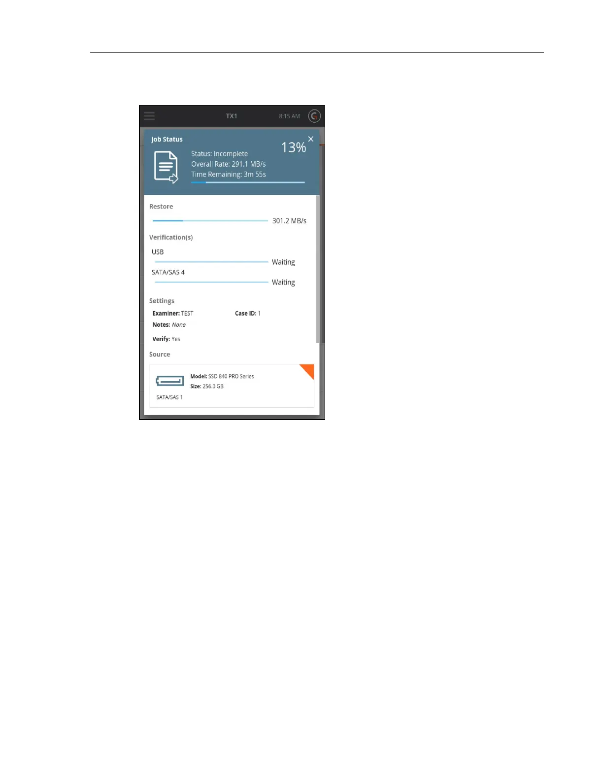 To cancel the Restore operation, tap the Cancel button from the Jobs summary screen.