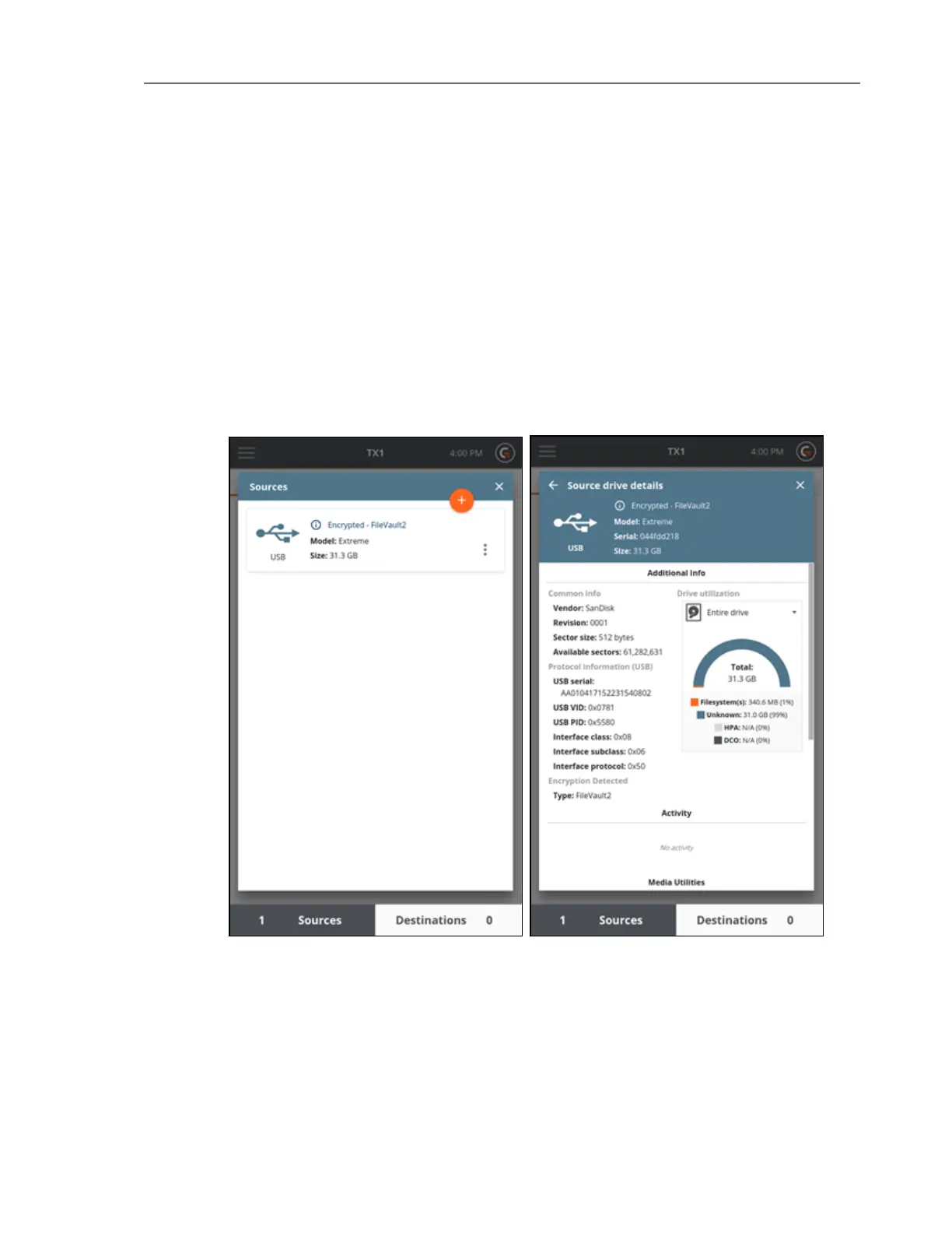 at the top of the Drive Details screens. Both cases are shown in the screenshots below.