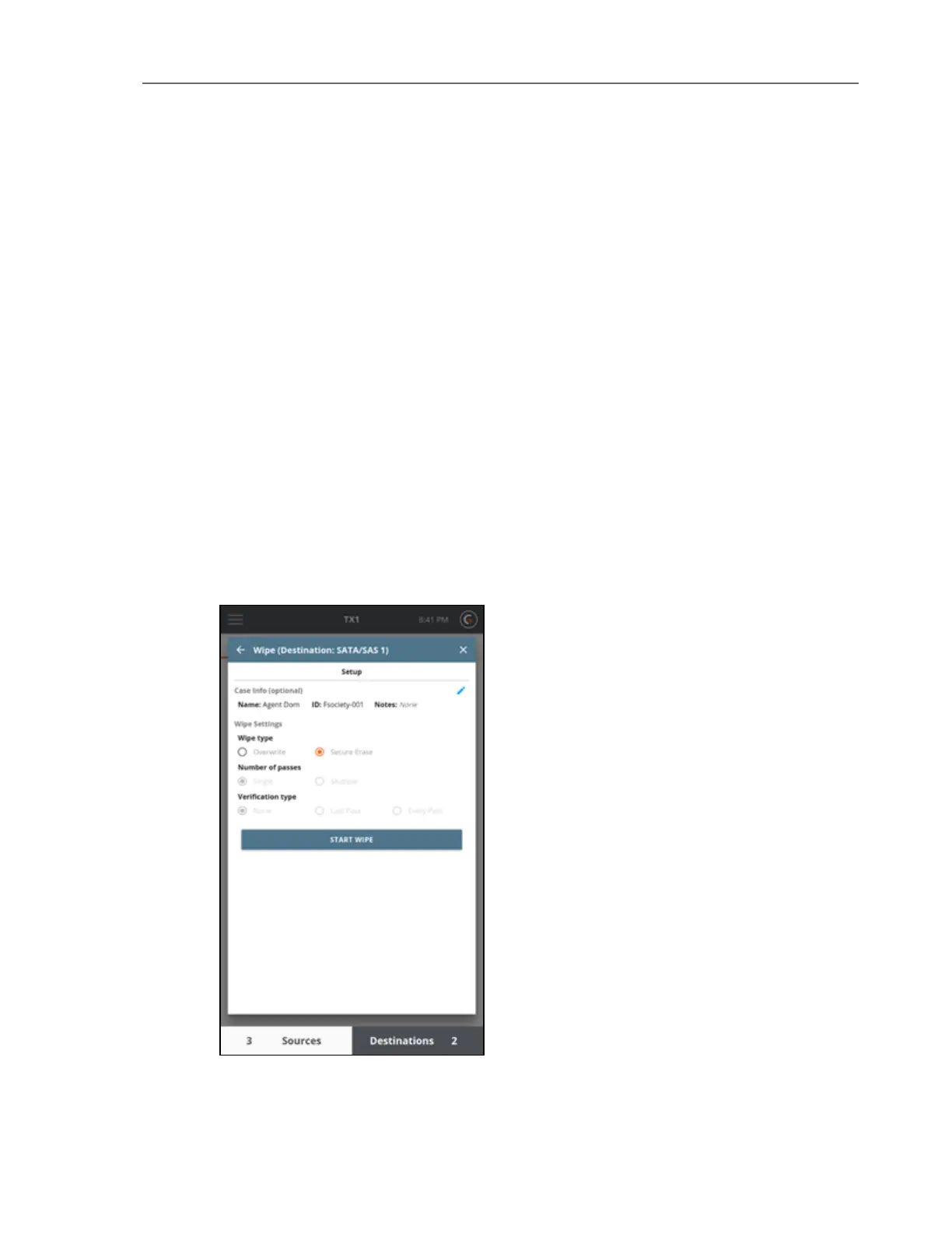 The Wipe media utility provides two wipe types for destination and accessory drives: