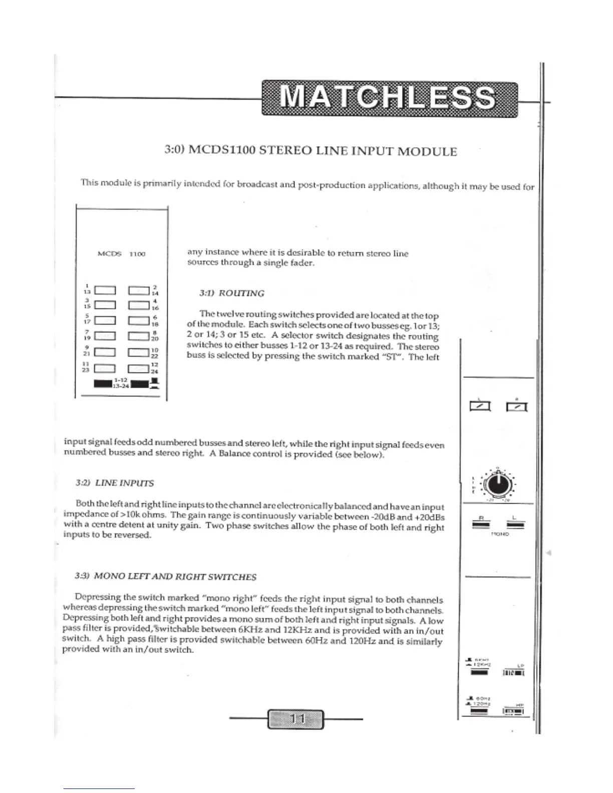 TAC Matchless - MCDS1100 Stereo Line Input Module; Module Routing Options; Module Stereo Line Inputs; Mono Left and Right Input Switches
