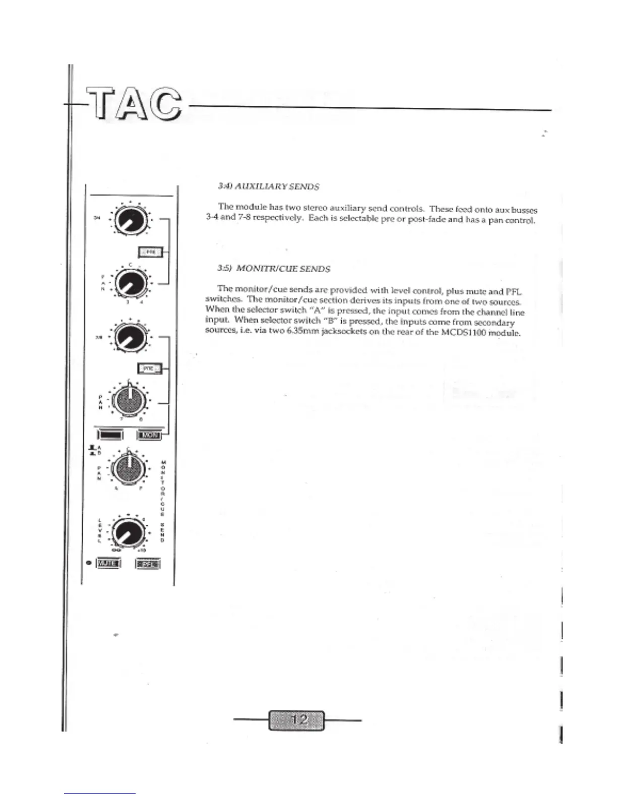 TAC Matchless - Module Stereo Auxiliary Sends; Module Monitor;Cue Send Inputs