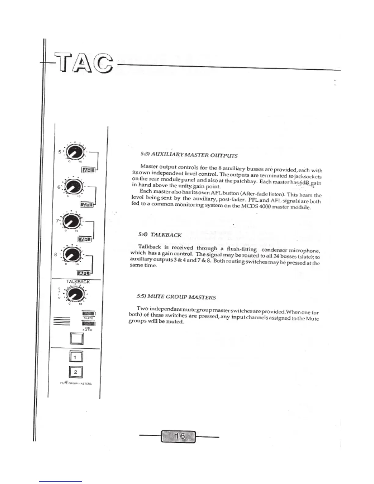 TAC Matchless - Auxiliary Master Output Controls; Talkback System Operation; Mute Group Master Controls