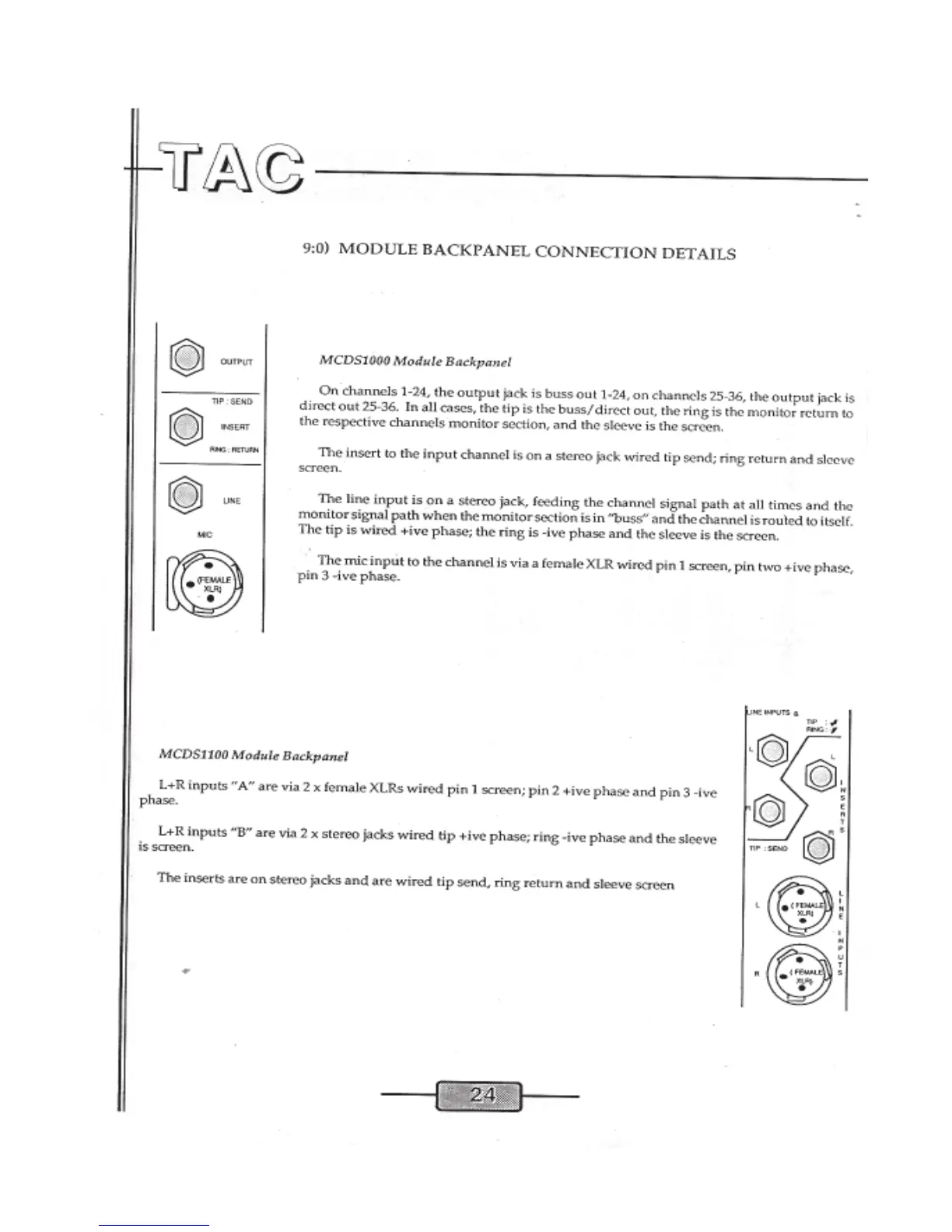 TAC Matchless - Module Backpanel Connection Details; MCDS1000 Module Backpanel Connections; MCDS1100 Module Backpanel Connections