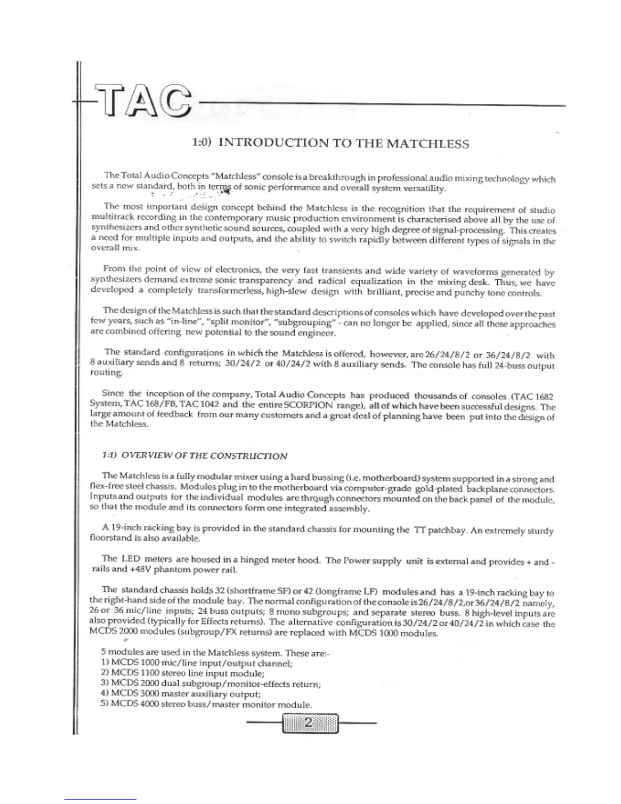 TAC Matchless - Introduction to the Matchless Console; Overview of Console Construction