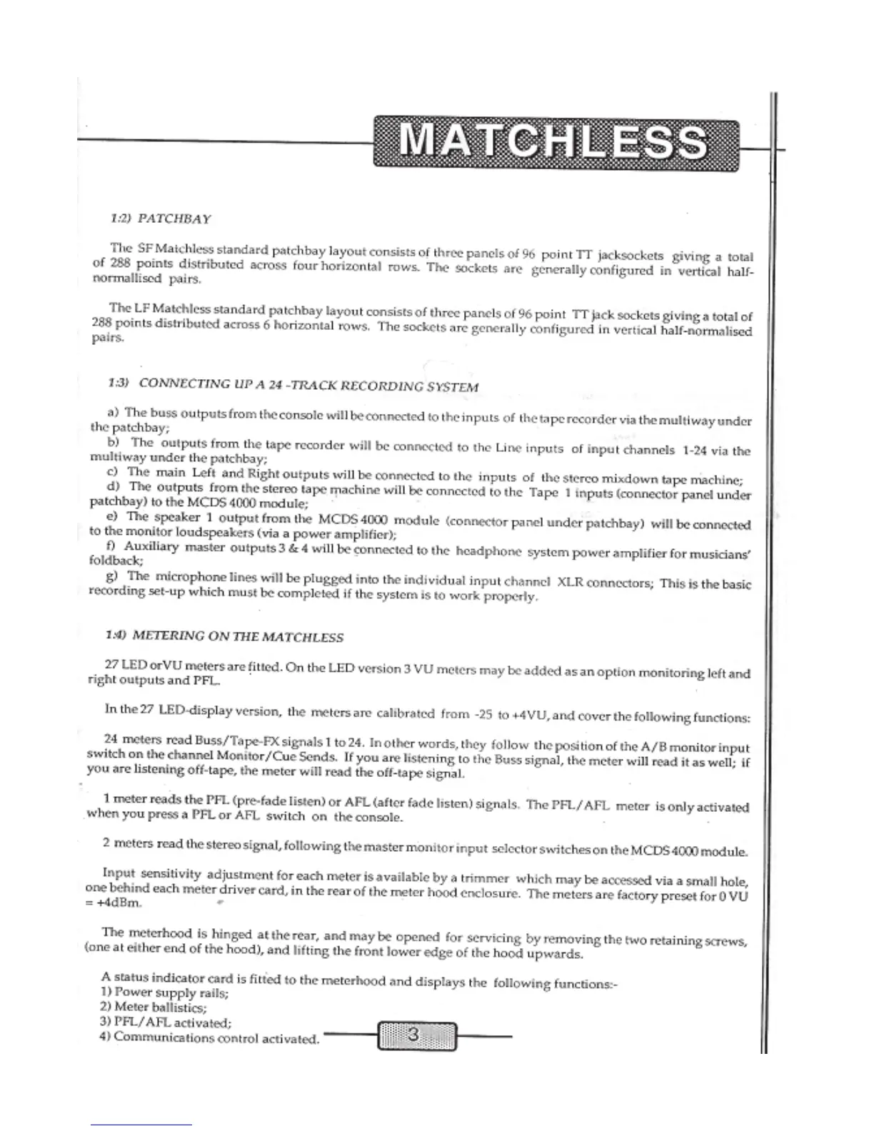 TAC Matchless - Patchbay Layout and Functionality; Connecting a 24-Track Recording System; Metering System Explained