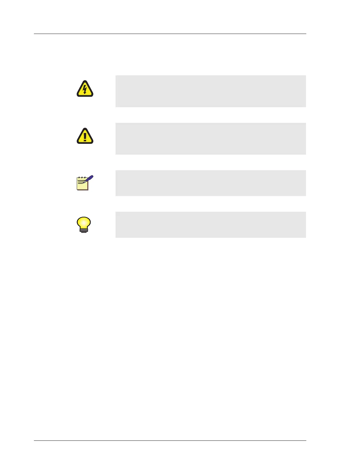 Throughout the manual four specially marked texts may occur.