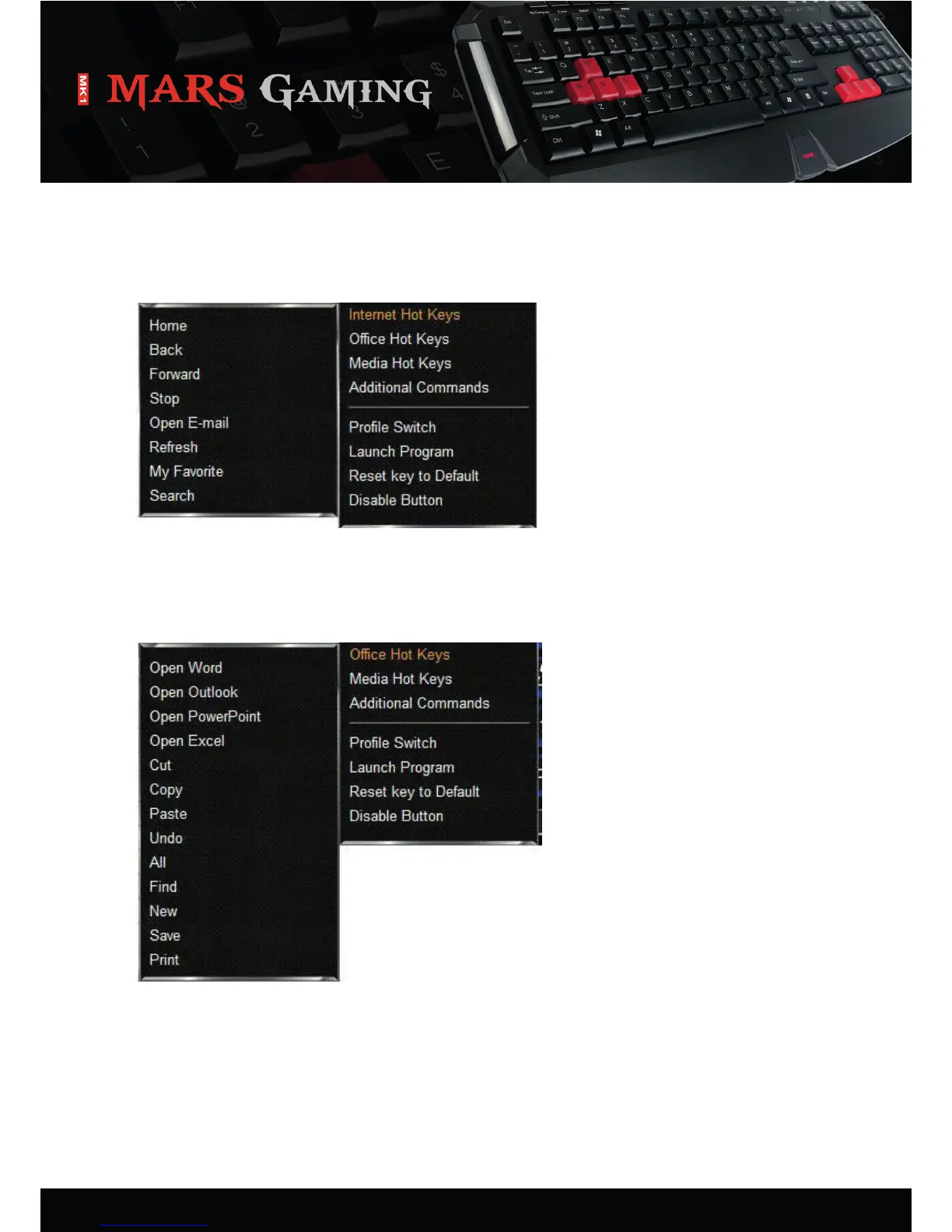 Each key can be assigned an Office funcon using the configurator: