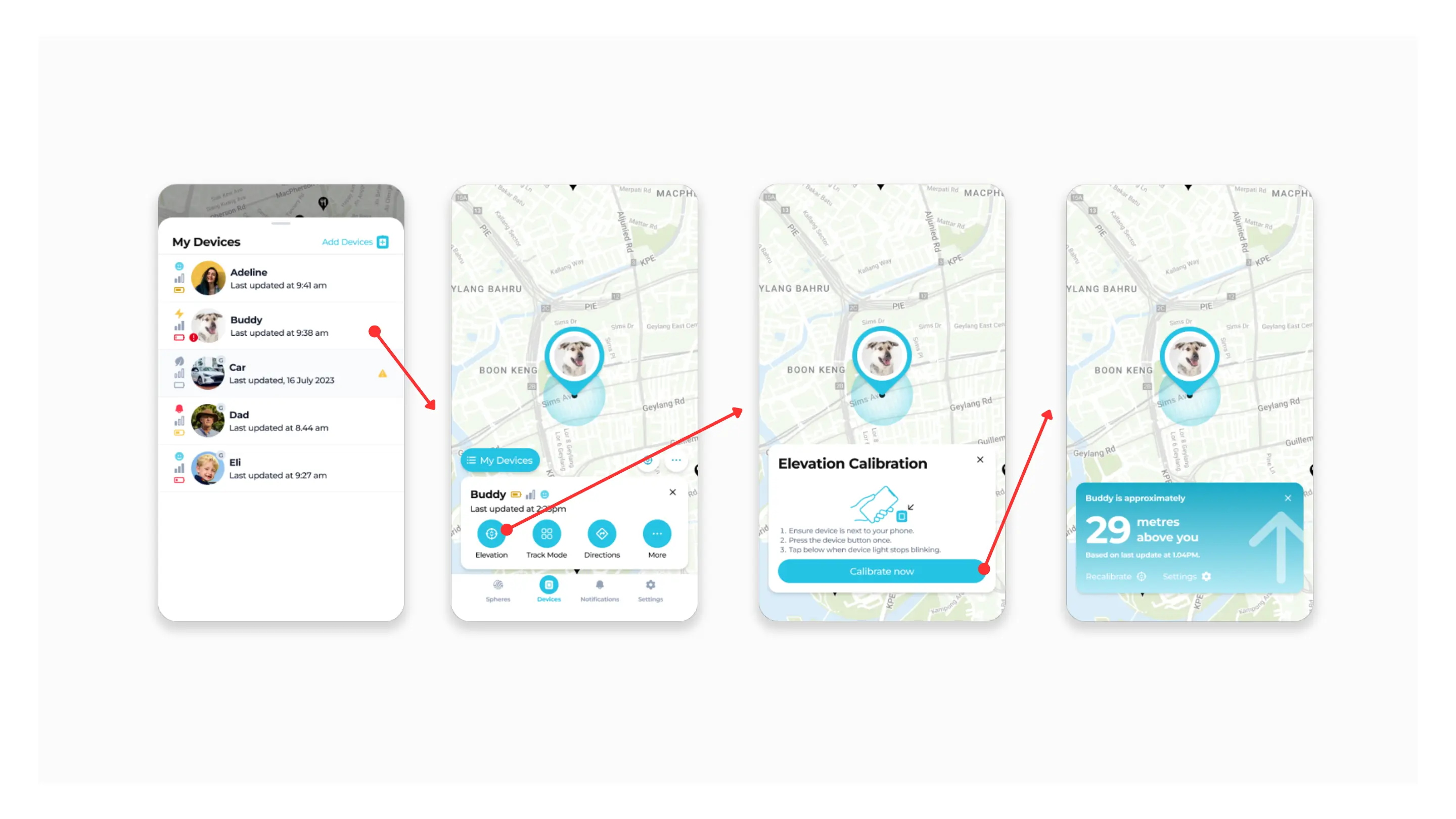 accordingly. View the approximate elevation information when you are within 100m range from your device.