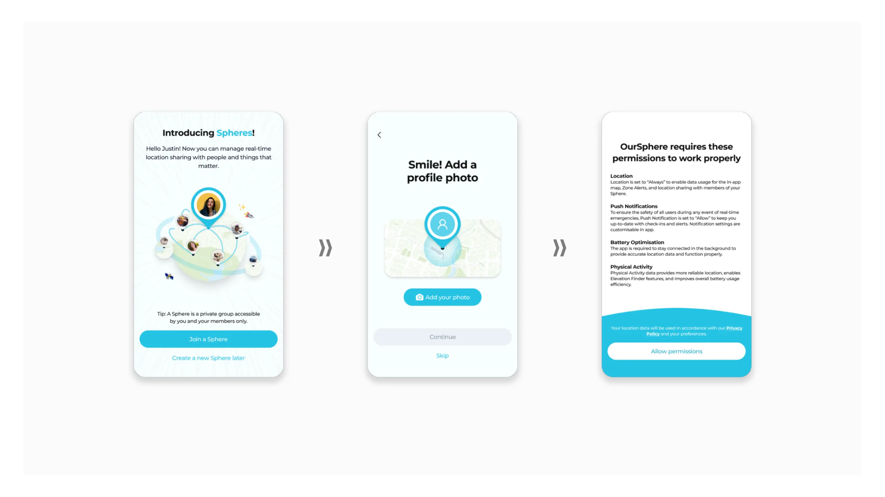 Complete the account setup, and allow permissions for OurSphere to work properly.