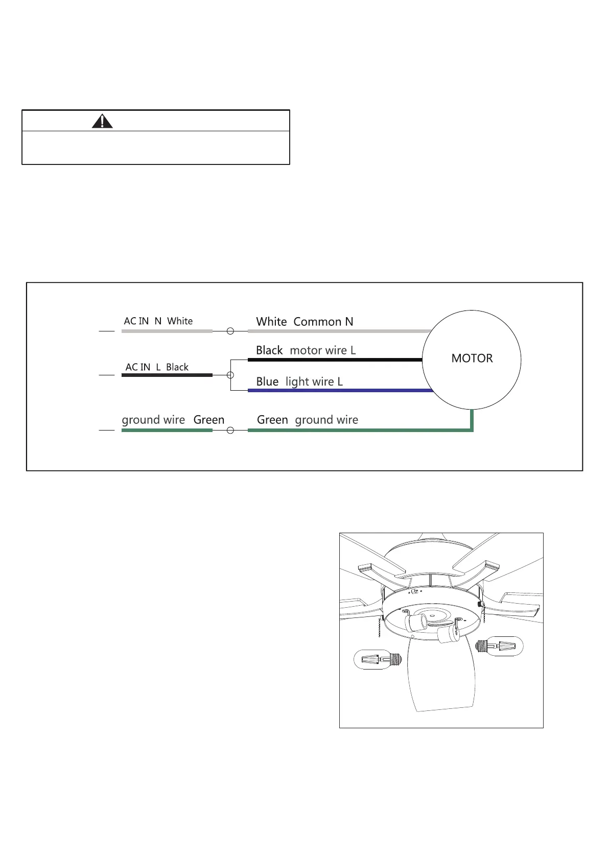 - Insert the AC IN L to the blue light wire L of the motor assembly.