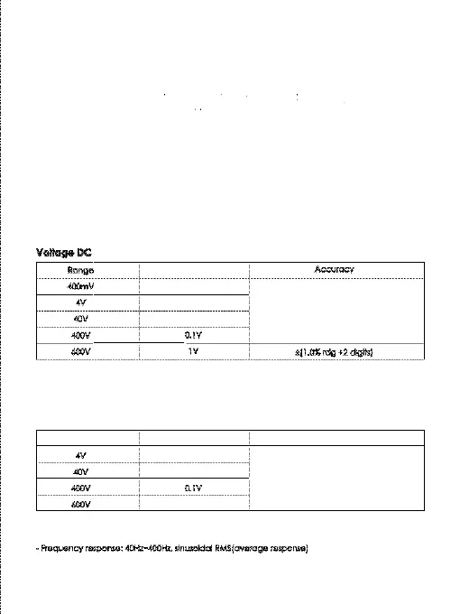 TACKLIFE CM01A - TECHNICAL SPECIFICATIONS; DC Voltage Specifications; AC Voltage Specifications