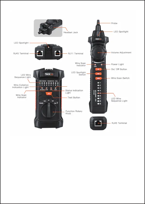 RJ45 RJ11 Wire Tracking: RJ11 and RJ45 wires can be found through transmitter.
