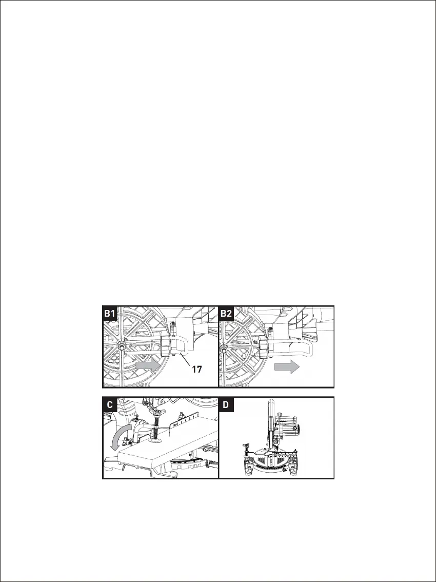3) Place the sliding mitre saw on the surface aligning holes in base with holes drilled in the surface.
