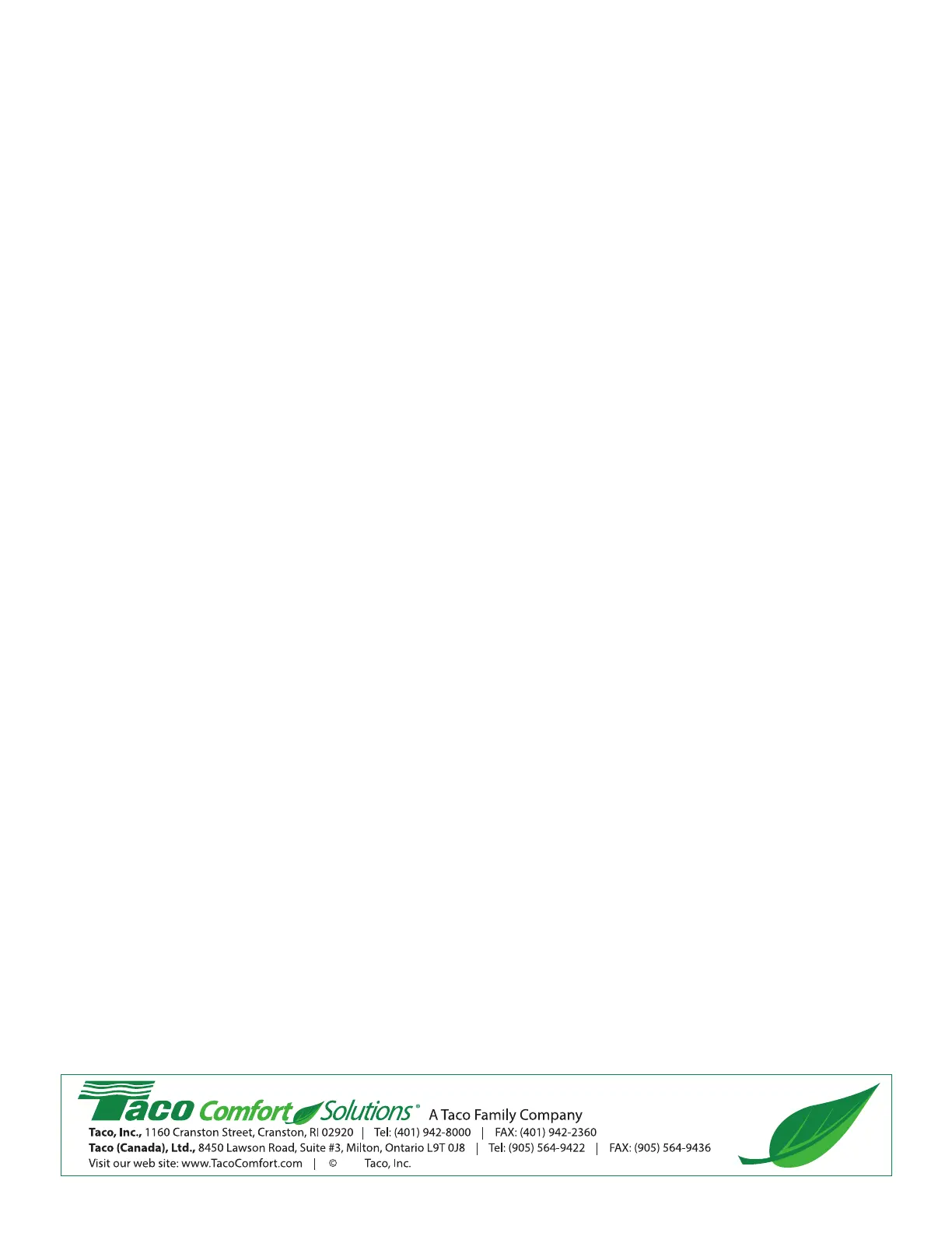 applicable Taco instruction sheets or contact Taco at