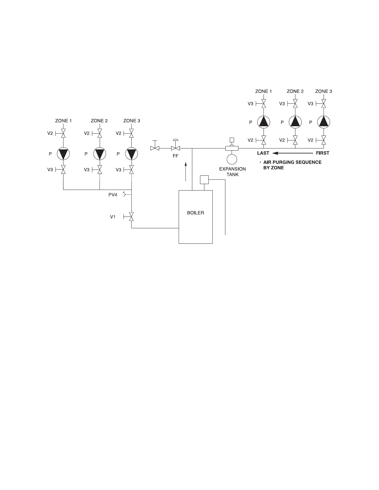 Open V2, PV4, to purge last zone