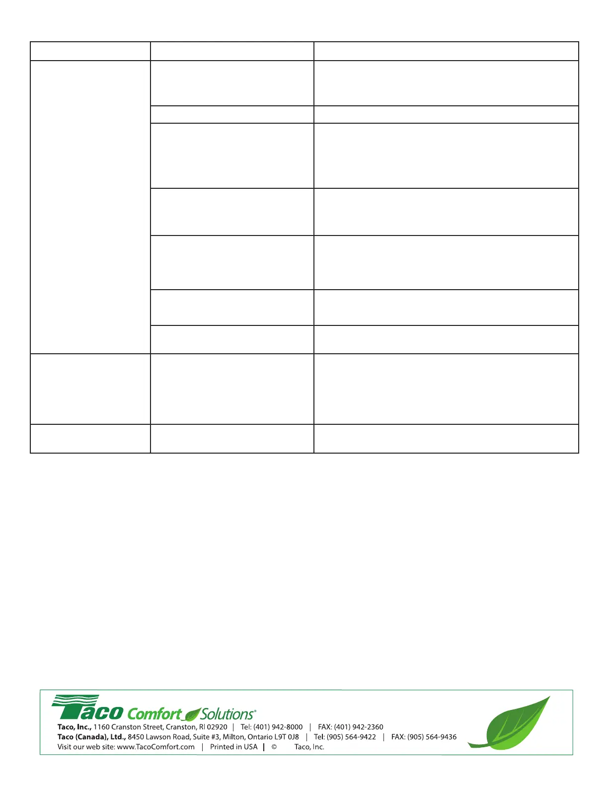 applicable Taco instruction sheets or contact