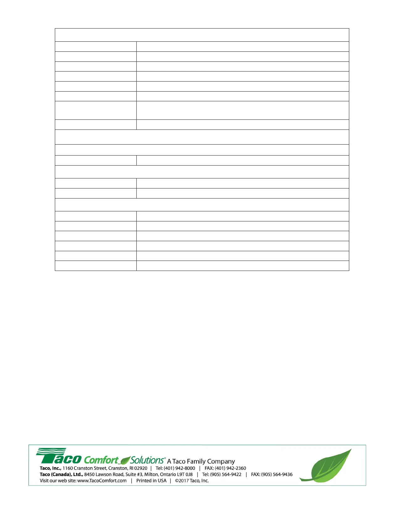 applicable Taco instruction sheets or contact Taco at [401-942-8000].