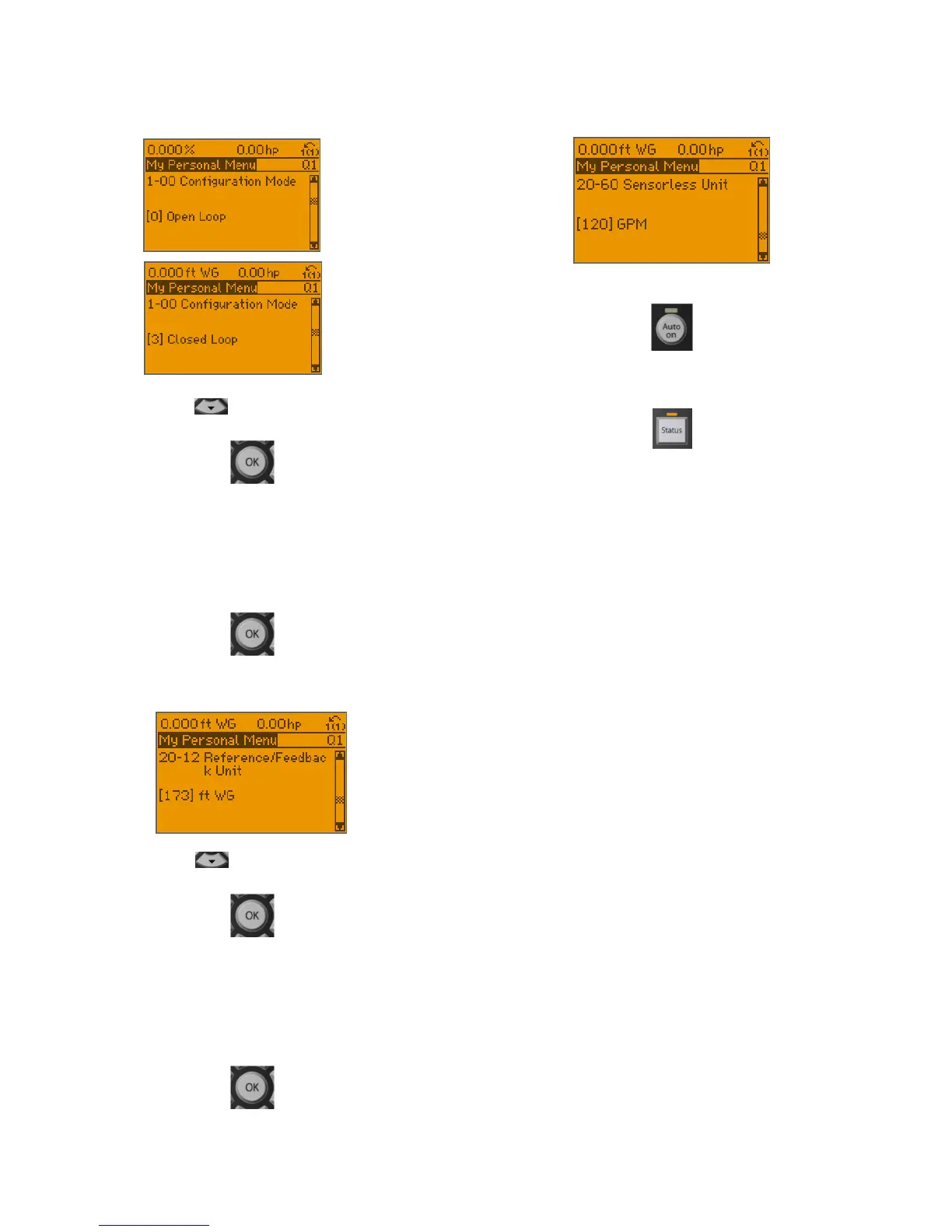a.Parameter 20-60 = Sensorless Unit to GPM.