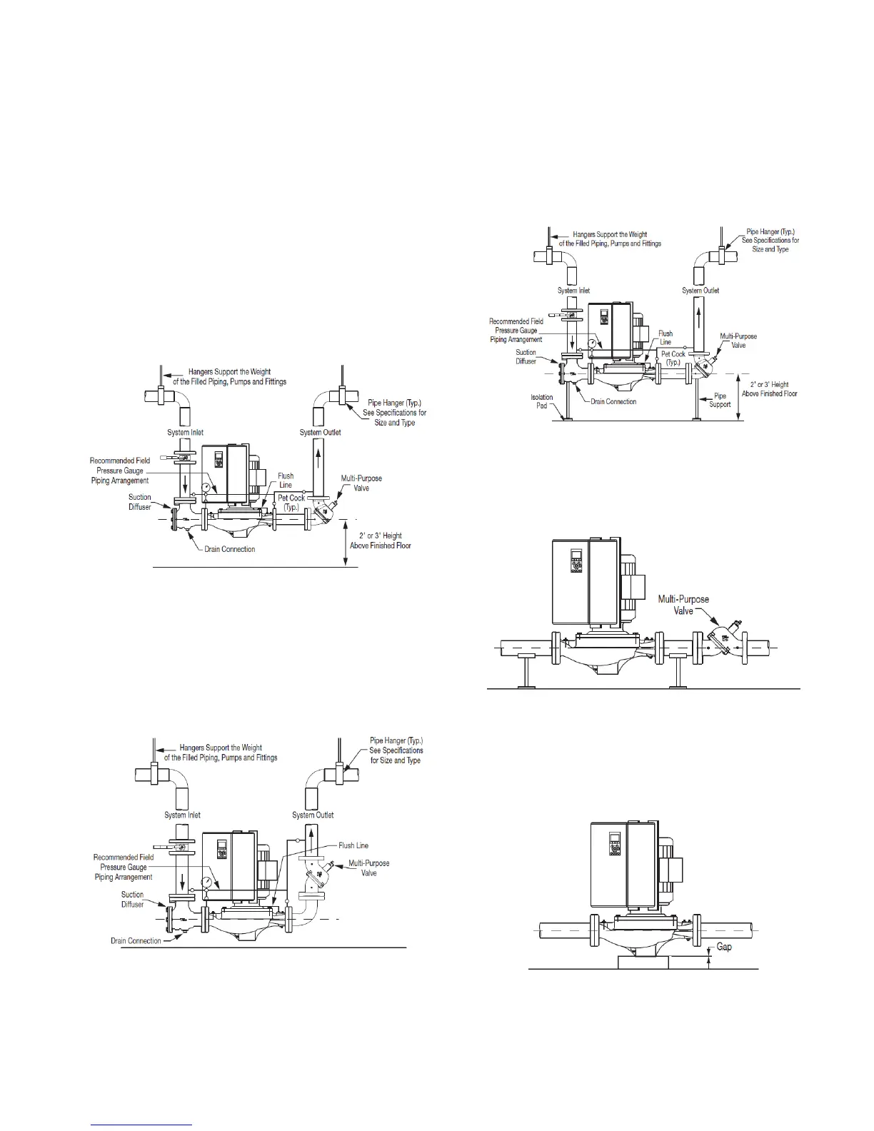 Piping for smaller in-line pumps (typically 15 hp and