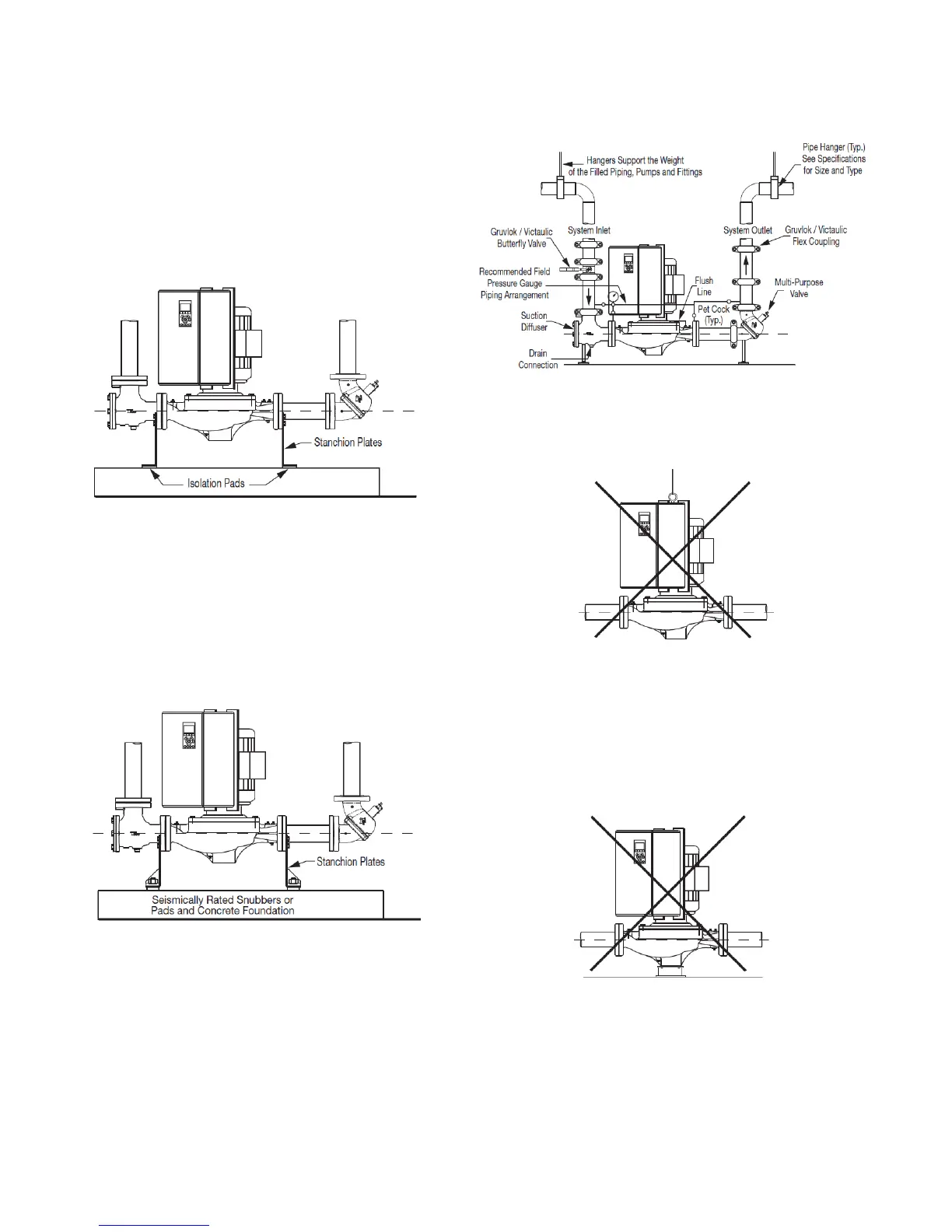 NOTE: The pump should not be rigidly attached to the base/pad structure unless flexible couplings are used.