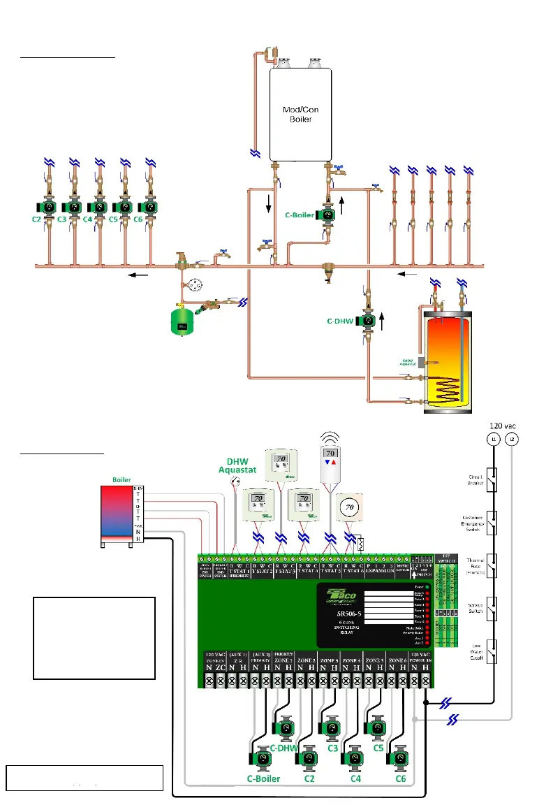PA02-C - SR506-5 with 5 Zone Circulators & Indirect DHW; Primary/Secondary