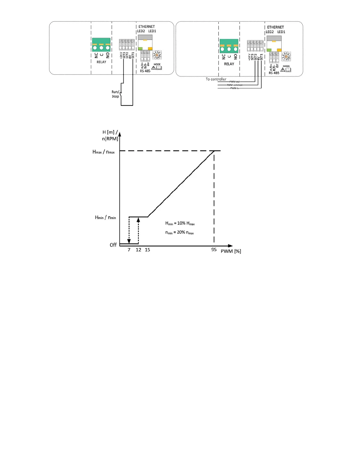 • Set 3 and Set 1 Open – Pump in Standby (VFD powered, motor is o, no ow), regardless of PWM signal