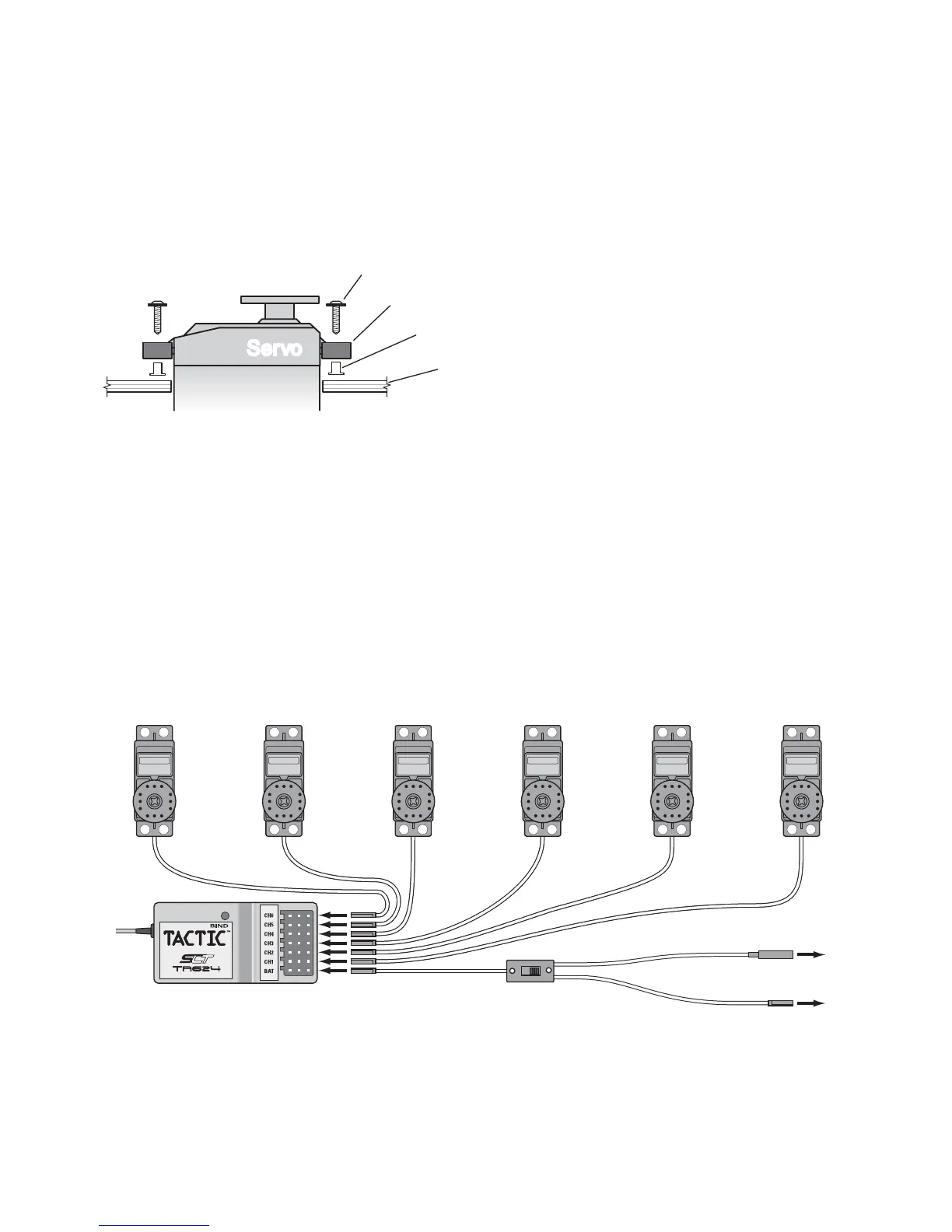 Connect the servos to the Rx as shown. Route the wires so they do not interfere