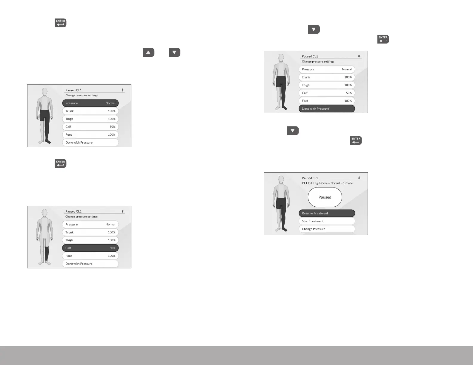 the steps above to set each body treatment area pressure back to