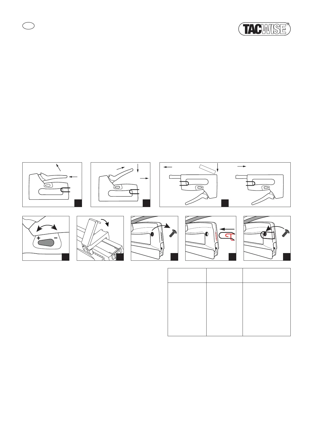 • Utilice únicamente grapas/clavos Tacwise ya que otros pueden causar atascos o daños en la