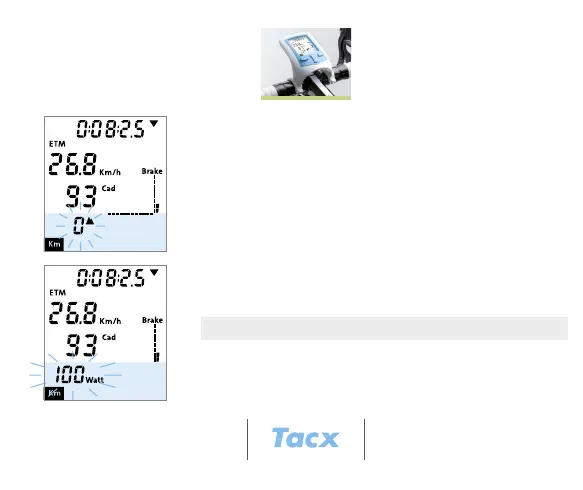 the cylinder so you always pedal at the selected power setting. You can set this from 10 to 990 Watts