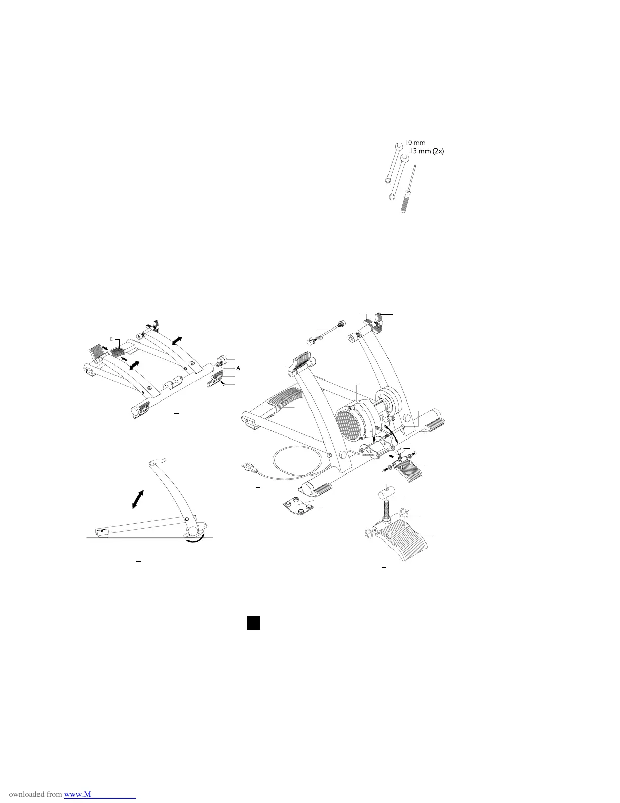 3 Unfold the trainer and place it on a level surface. By fully squeezing grip E,