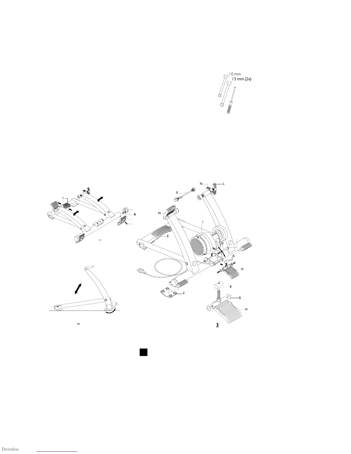 3 Coloca el entrenador plegado en una base sólida y plana. El caballete se pliega y se despliega