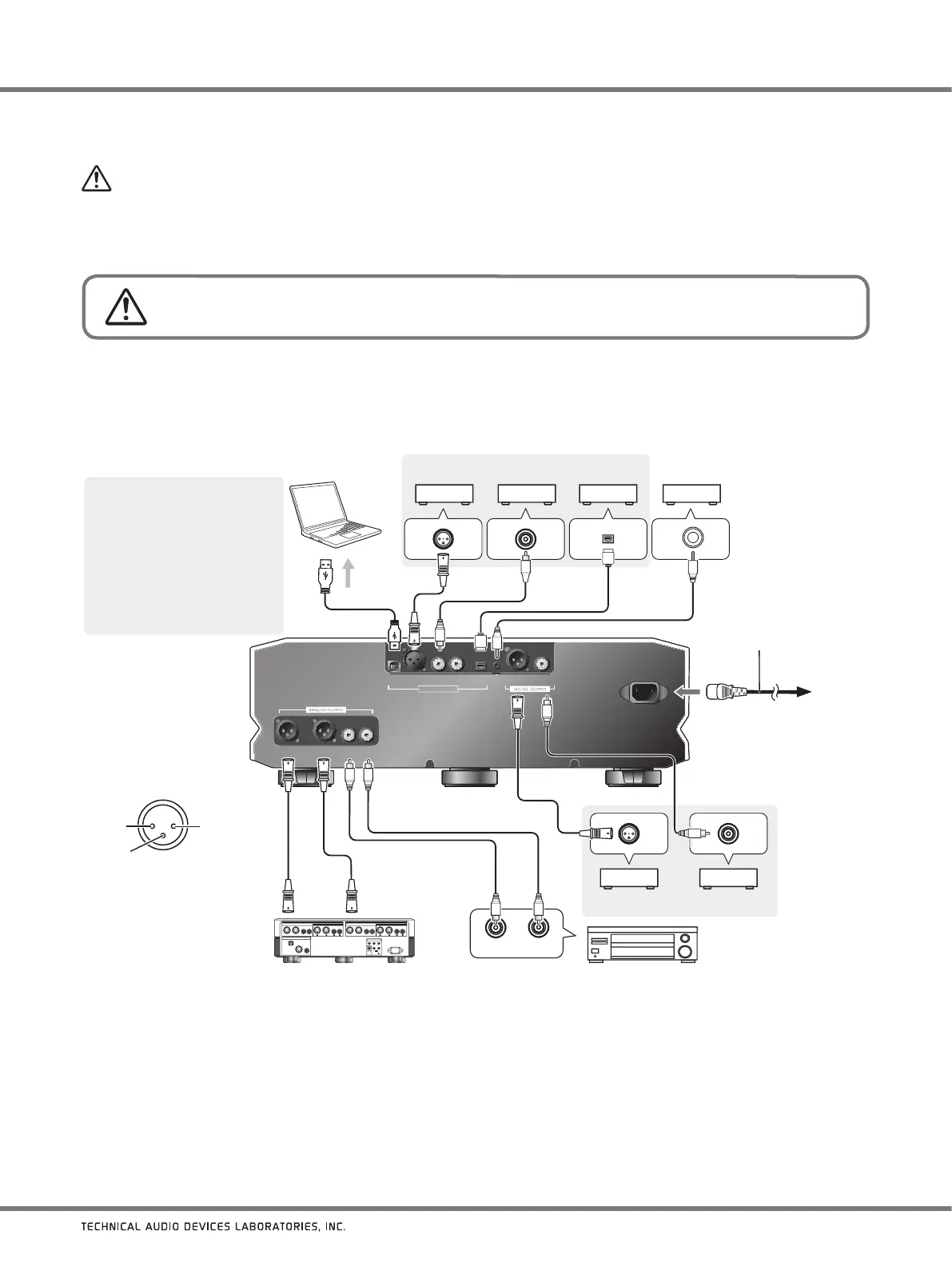 питания от розетки переменного тока. При выполнении соединений подсоединяйте шнур питания в последнюю очередь.