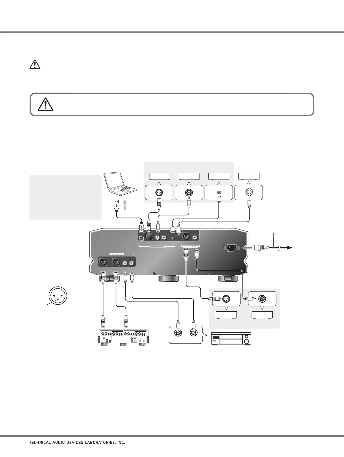 Do not turn on the power switch to the TAD-DA1000 or the other components until all connections have been completed.